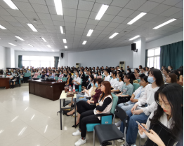 教师代表张璐老师致辞,根据当下的国内外大环境,她结合自身的经历和经验,希望全体新生能够在大数据的时代中,勇当先锋,刻苦努力,在信息化的浪潮中掌握适合自己的学习方法,讲求效率,不断提升自己。