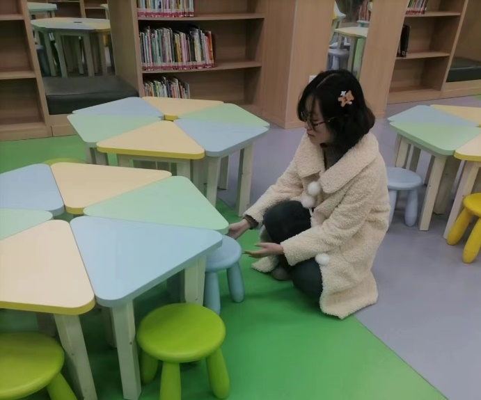 少儿馆书库除了要有规整的图书,还要有舒适干净的环境。另一小组的志愿者们清洁少儿馆书库,他们配合工作人员将桌椅摆放整齐,把地面打扫的干干净净,为小朋友们提供一个更为舒适整洁的阅读环境,增强读书的乐趣。尽管很辛苦,但是他们劳在其中,乐在其中。
