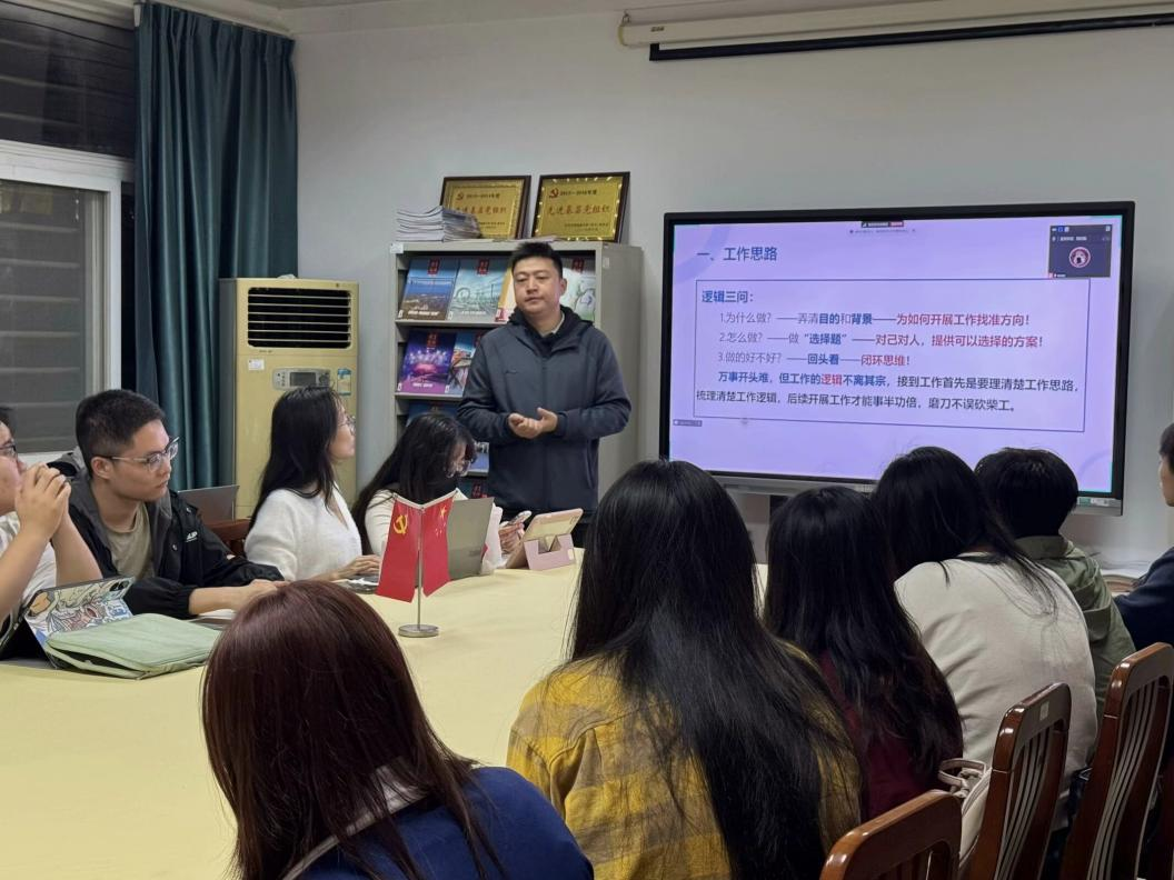 工作思路方面,邹老师提出了“逻辑三问”:为什么做?怎么做?做的好不好?他建议广大团学骨干在接收工作指示时,需弄清工作目的和背景,明确工作实质,找准方向,将任务进行实质性传达,提高工作效率。同时在工作上要善做“选择题”,一改泛泛的协调方式,而是提供可以选择的方案,增强需求的直接性和有效性,才能有积极的结果预期。除此之外,要合理运用线上线下的商讨方式和工作方式,将人际交往交互的模式运用到工作中,善于总结经验。 更重要的是培养“回头看”的闭环思维,用问卷调查回收反馈。同时,邹老师还强调各位骨干要培养工作迁移能力,这将成为未来工作岗位的核心竞争力。
