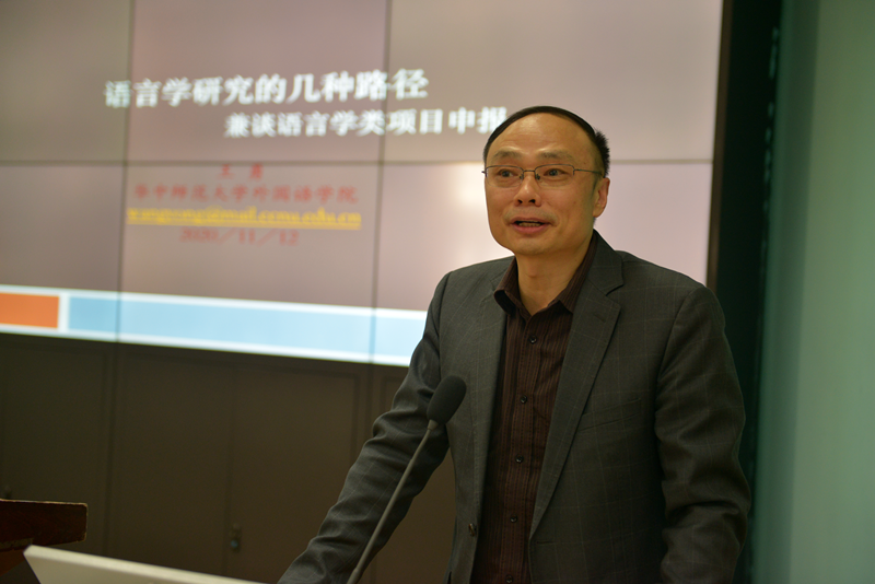 2020年11月12日15时,mk体育“南望今声”系列讲座(十八)在北一楼学术报告厅如期举行。华中师范大学mk体育副经理、博士生导师、外国语言学与应用语言学研究所所长王勇教授应邀为公司师生作题为“语言学研究的几种途径-兼谈语言学项目申报”的学术讲座。本次讲座由mk体育副经理张伶俐教授主持,经理张峻峰教授、部分外院老师和研究生同学到场聆听学习并参与交流。