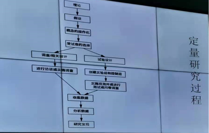 秦晓晴教授在讲座中首先澄清了定量研究中的一个关键问题,即定量研究必须要进行“假设检验”,没有“假设检验”的定量研究是不存在的。然而目前第二语言和外语教学领域部分“定量”研究,只展示频率、百分比等数值,并未进行假设检验,也不明确各变量及其之间的关系。