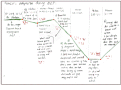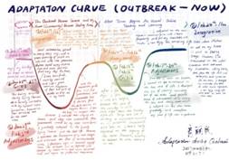 《跨文化交际》是大三年级专业选修课,课程第四讲主题是“跨文化适应”。跨文化适应是交际者面对陌生文化环境带来的压力,不断做出自我调整,逐步适应新生活方式的过程。研究者们通过构建曲线模型来展现适应过程的特征。鉴于疫情期间员工的跨文化交际实践受限,我将这一模型与员工面对疫情所做出的自我调整结合,启发同学们以图文(英文)共现的形式手绘自己疫情期间的适应模型,让他们通过多彩的图案和流动的文字分享自己积极调整、主动适应的心路历程,并与跨文化适应模型进行比对,加深对跨文化适应理论的理解。