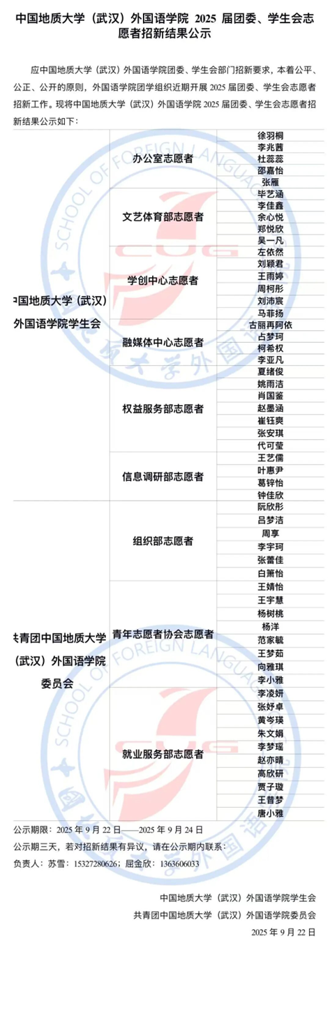 【公示】mk体育 2025 届团委、员工会志愿者招新结果公示