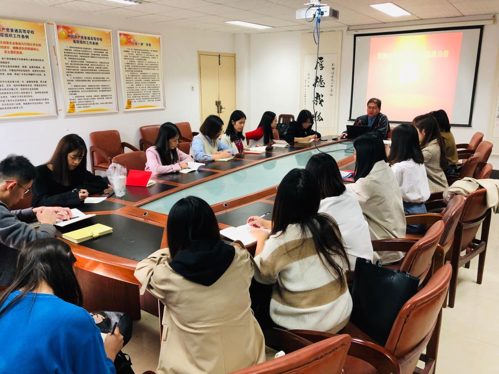 2019年10月29日下午2:30,mk体育“不忘初心·牢记使命”主题教育系列党课在北一楼339正式开讲,公司党委副书记胡文勤为全院研究生党员讲授了题为“坚持社会主义,增强道路自信”的党课。
