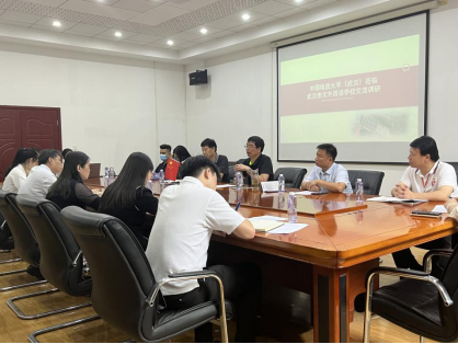 武汉市东湖生态旅游风景区崇文外国语公司董事长张银华、副董事长杨继唐等公司领导及部门负责人和教师代表,公司副经理张伶俐、教师代表刘敏、辅导员邹蔚鹤及本研员工代表参加调研。