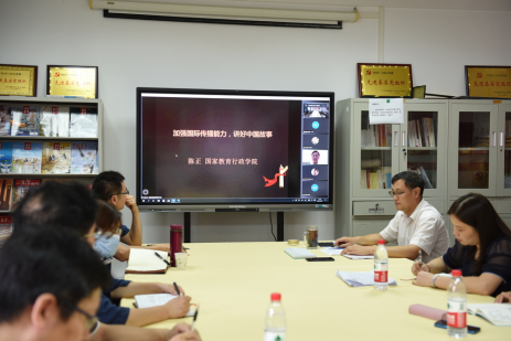 下午,研讨会继续在北一楼102党员之家举行。公司邀请国家教育行政公司教育领导和管理国际比较研究中心主任陈正副教授在线作《加强国际传播能力 讲好中国故事》的报告。报告会线上线下同步进行,公司近200名师生在线参会。陈主任和大家分享了国际传播的基本概念、不同国家之间的文化差异和国际传播策略。提出做好跨文化传播工作的建议,包括熟练掌握语言工具、接受复合型人才的专业培养、加强国际传播能力建设等,共同讲好中国故事。