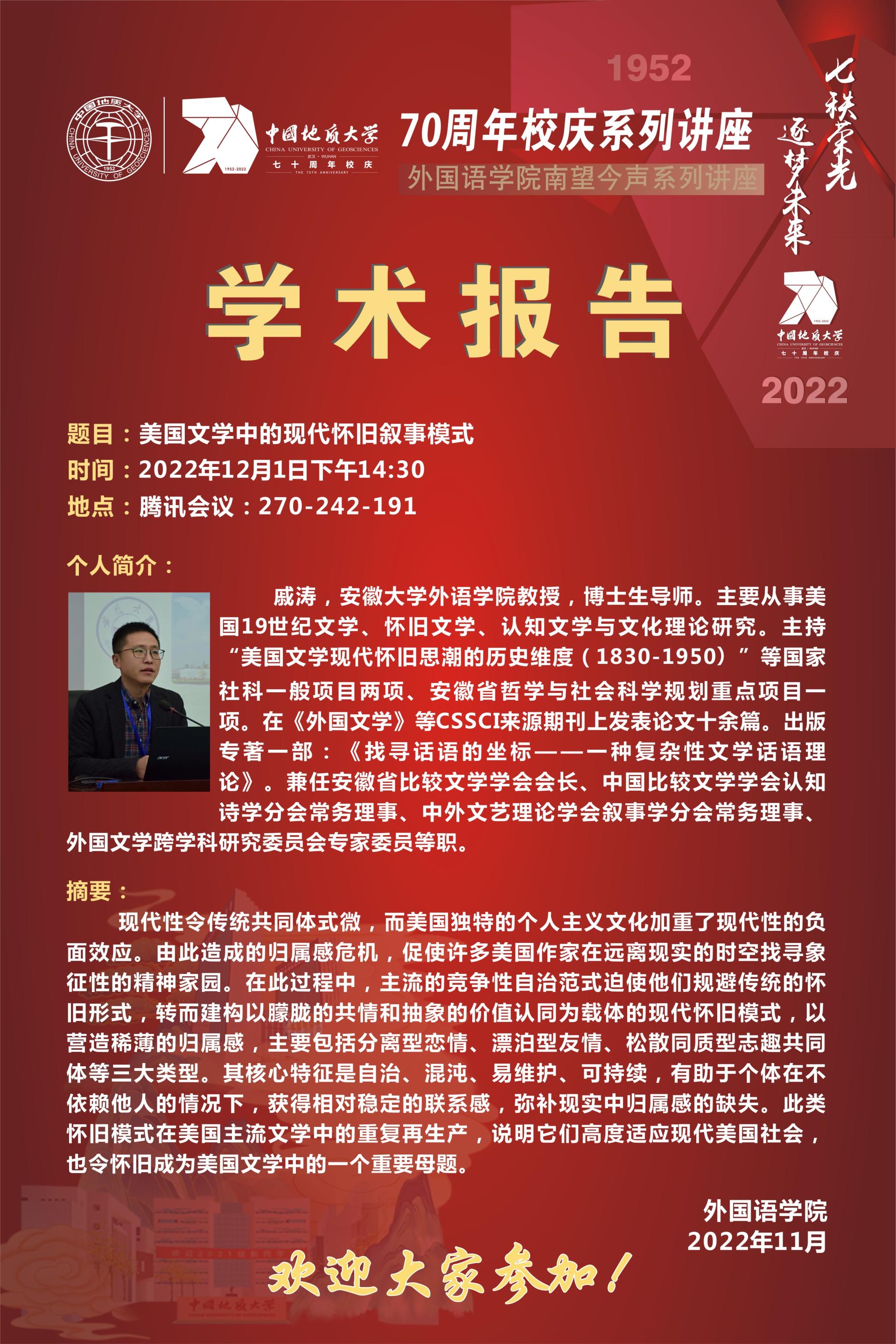 “南望今声”外语论坛系列讲座(四十六)海报