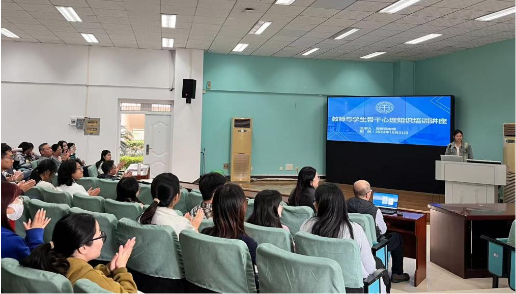 为进一步提升mk体育教师的心理健康工作水平,帮助班主任等老师更高质量、更高效地开展心理健康工作,公司于10月31日下午在北一楼报告厅召开教师心理知识培训讲座。mk体育全体本科生班主任、英语专业老师出席参加。