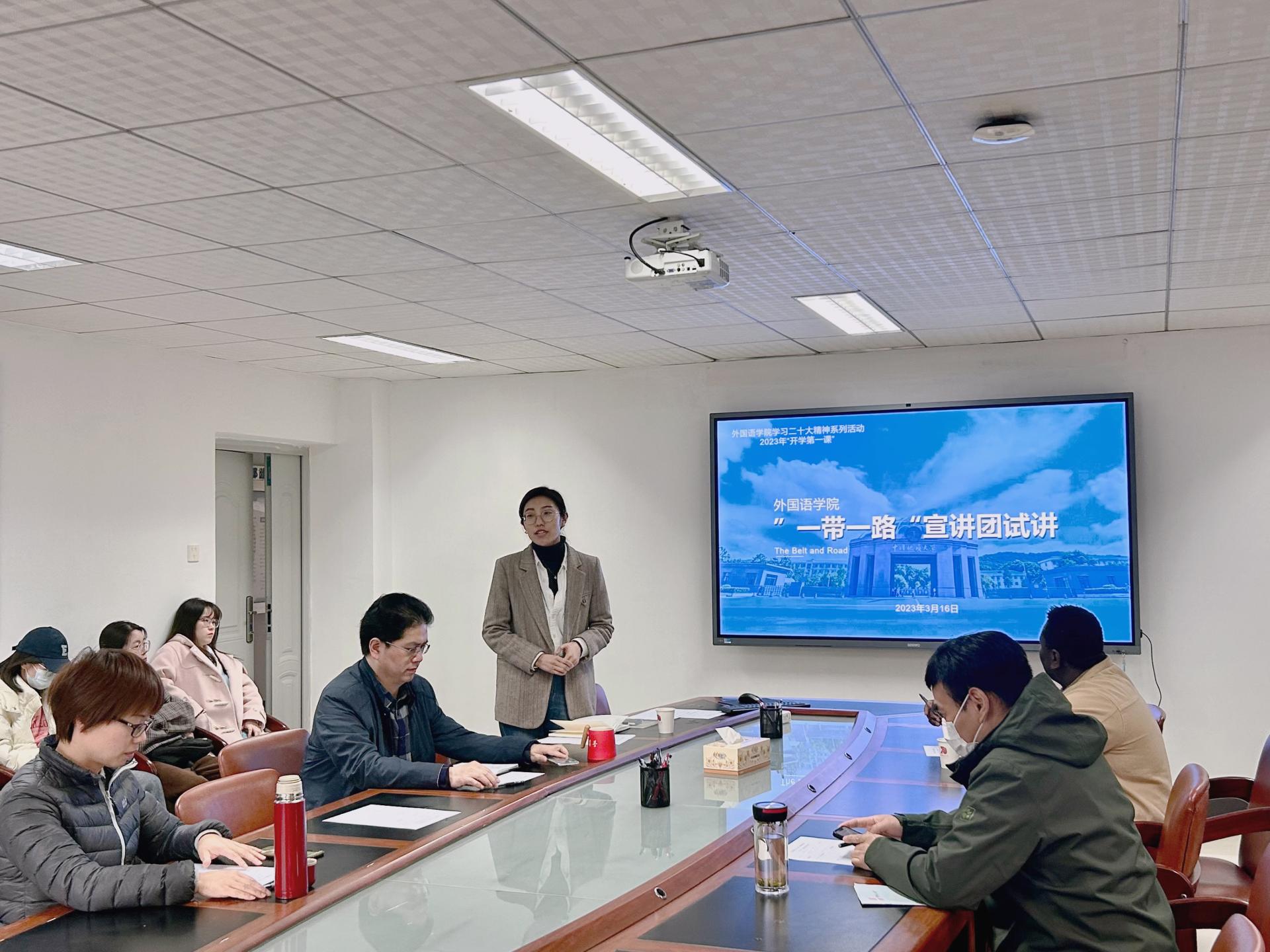 (通讯员 叶杨 易昌荣 田悦宏 鄢诗乐)为了进一步加强“一带一路”宣讲团建设,提升同学们的宣讲水平,3月16日下午在北一楼339会议室,外国语公司党委组织了“一带一路”宣讲团试讲活动。此次试讲以说课形式进行,中俄、中巴、中土、中非、中欧五个宣讲组精心准备,全员参与。活动由mk体育团委书记李海涵主持,公司党委副书记胡文勤、硕士生导师秦屹、徐邦俊以及国际教育公司非洲贝宁籍教师大明作为指导老师受邀参加。