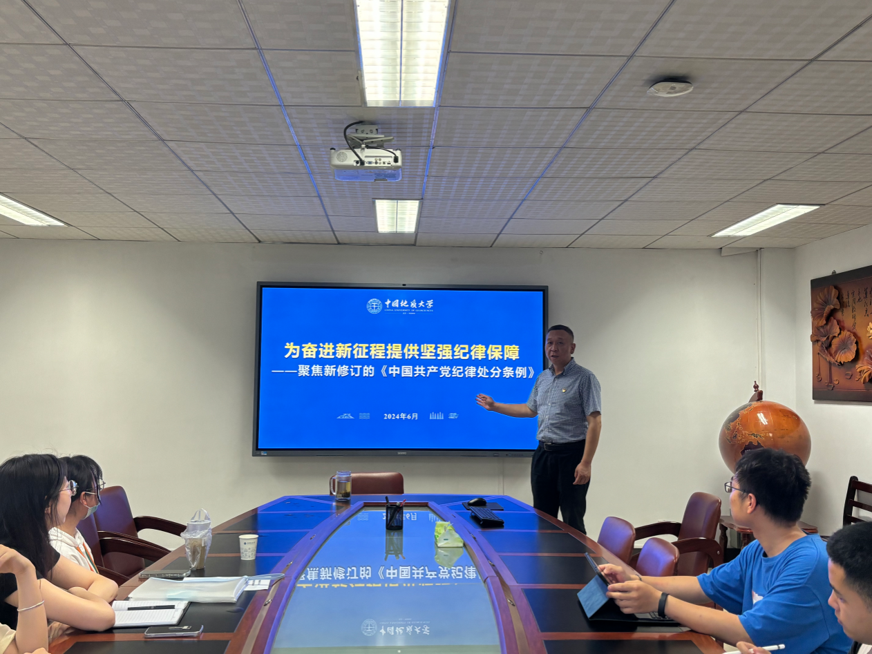 他还结合自身经历,用实例为大家讲解了如何严格遵守党纪党规,严以律己,并引用习近平总书记的要求“坚持勤俭节约、反对铺张浪费”号召大家从自身做起,从身边小事做起。他语重心长地叮嘱研究生同学恪守学术规范、严守学术诚信,把重心放在学习上,踏实求知识,诚信做学问,尊敬师长,团结同学,切实发挥好员工党员模范带头作用和研究生榜样引领作用。