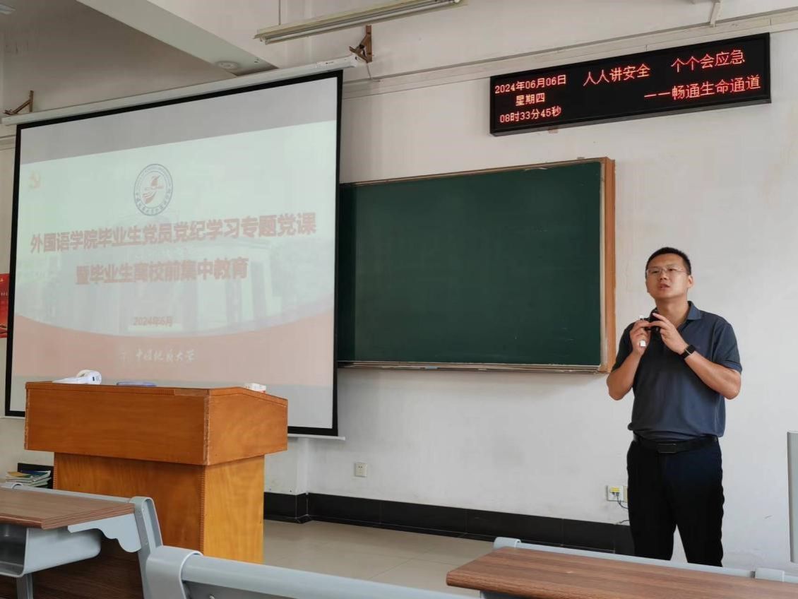 “打铁还需自身硬”。又逢一年毕业季,mk体育开展毕业生党员党纪学习集中教育,为毕业生党员系好走向社会的第一粒扣子。党委副书记、纪委书记余尚蔚为全体毕业生党员及全体毕业生讲授党纪学习教育专题党课。
